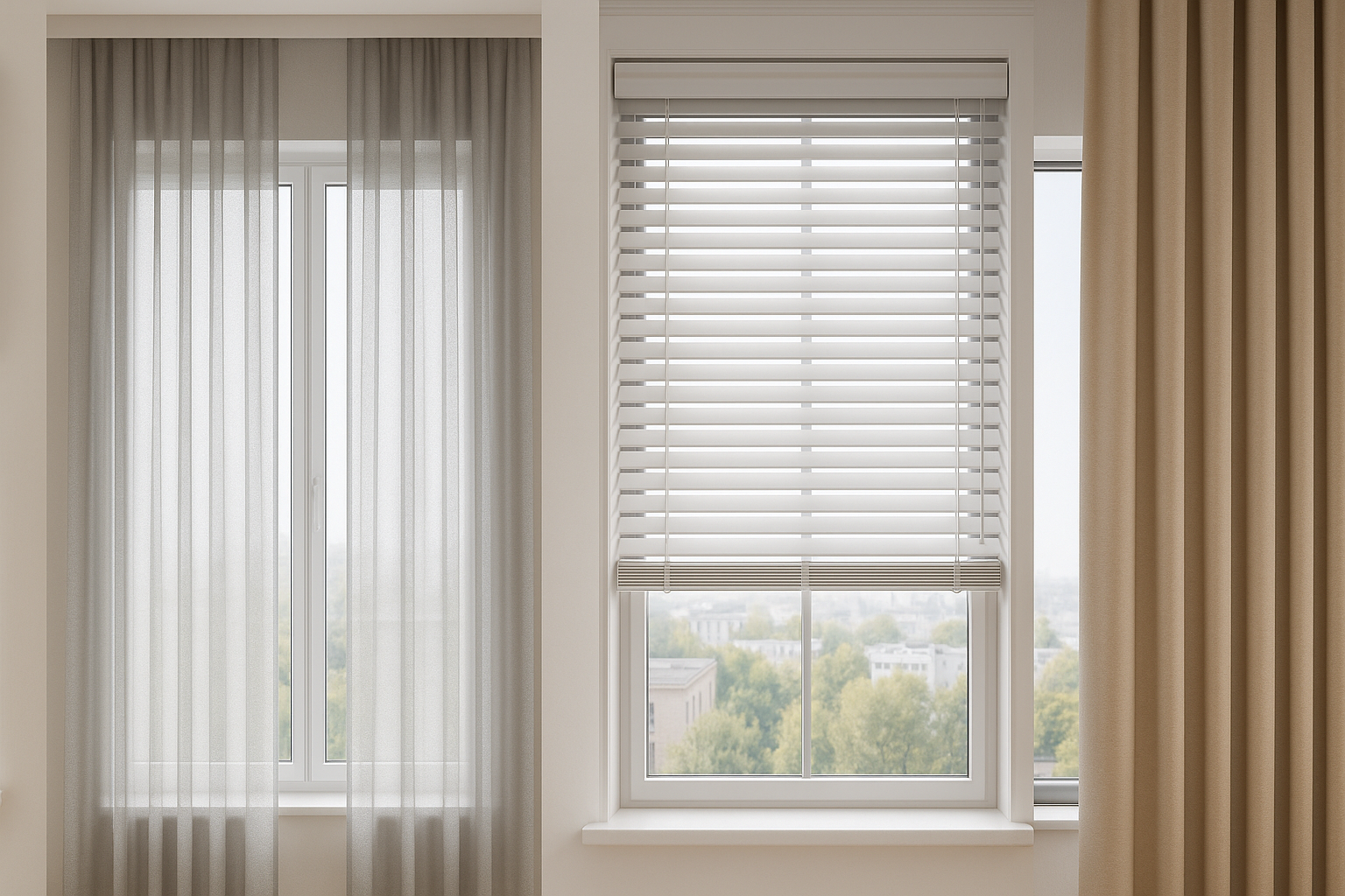 Rèm voan mỏng bên trong + lớp chống nắng ở ngoài + lớp trang trí (nếu có)